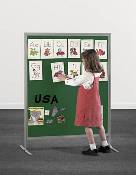 This in-stock model features attractive green loop fabric mounted over tackboard, enabling you to hang your materials with push pins, Velcro-like hook tab circles or hook tape. Sturdy, tubular light gray steel frames feature a baked enamel finish.